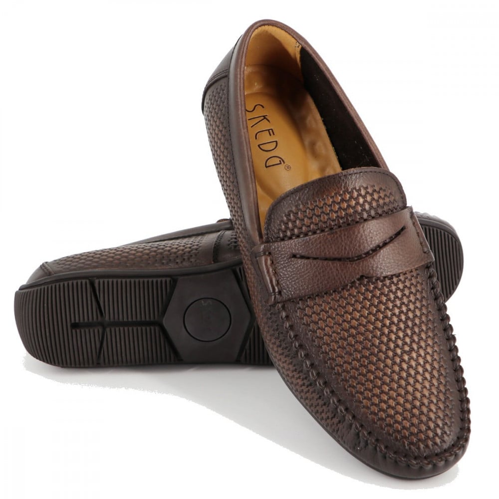 - مصنوع من الجلد الطبيعي عالي الجودة: يوفر متانة عالية ويحافظ على مظهره لفترة طويلة، مما يحل مشكلة الأحذية التي تفقد شكلها بسرعة.